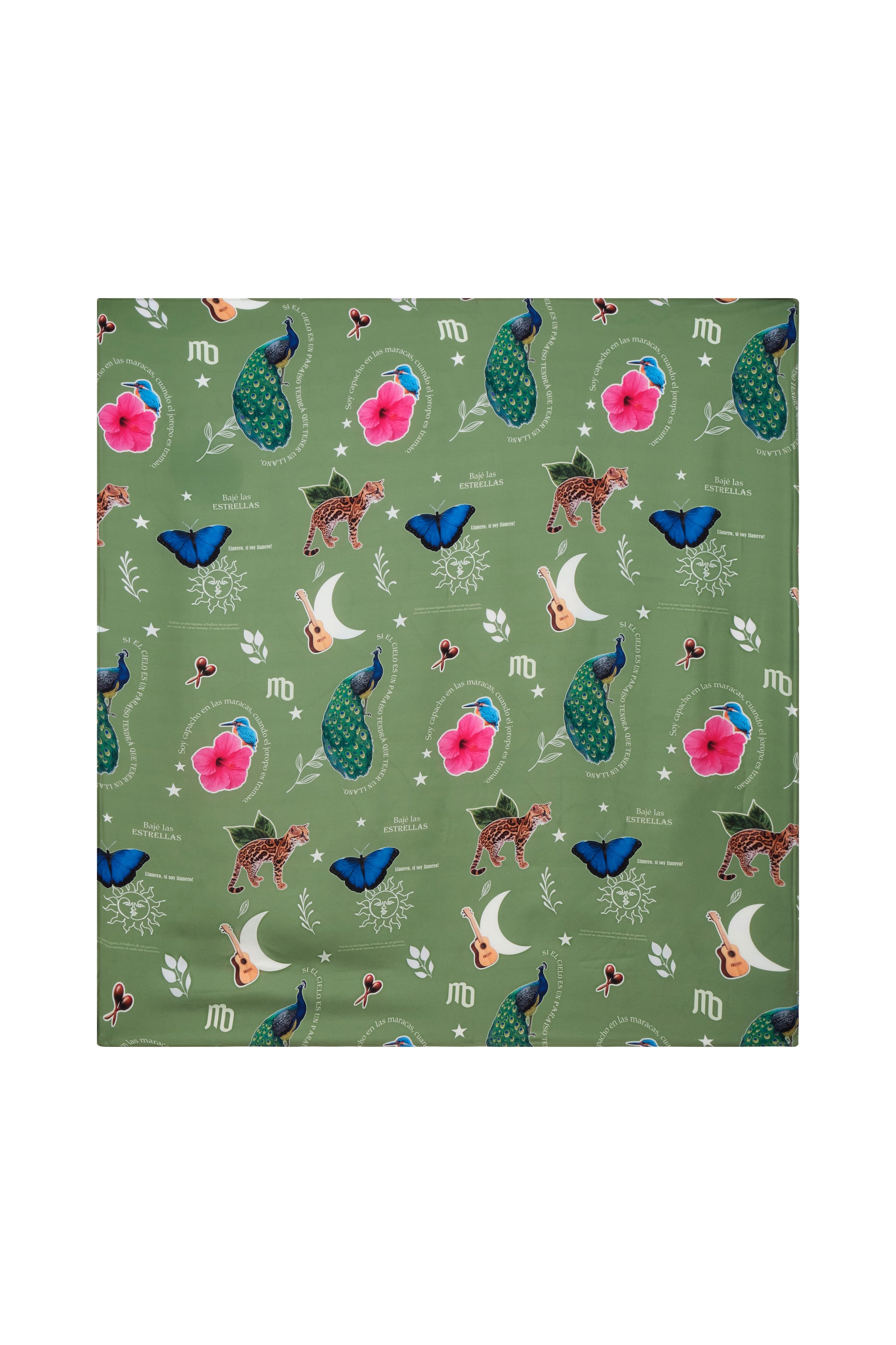 Inspirada en la inmensidad del llano colombiano, esta pañoleta celebra la esencia de una tierra donde el horizonte no tiene fin y la vida se canta al ritmo del arpa, el cuatro y las maracas.